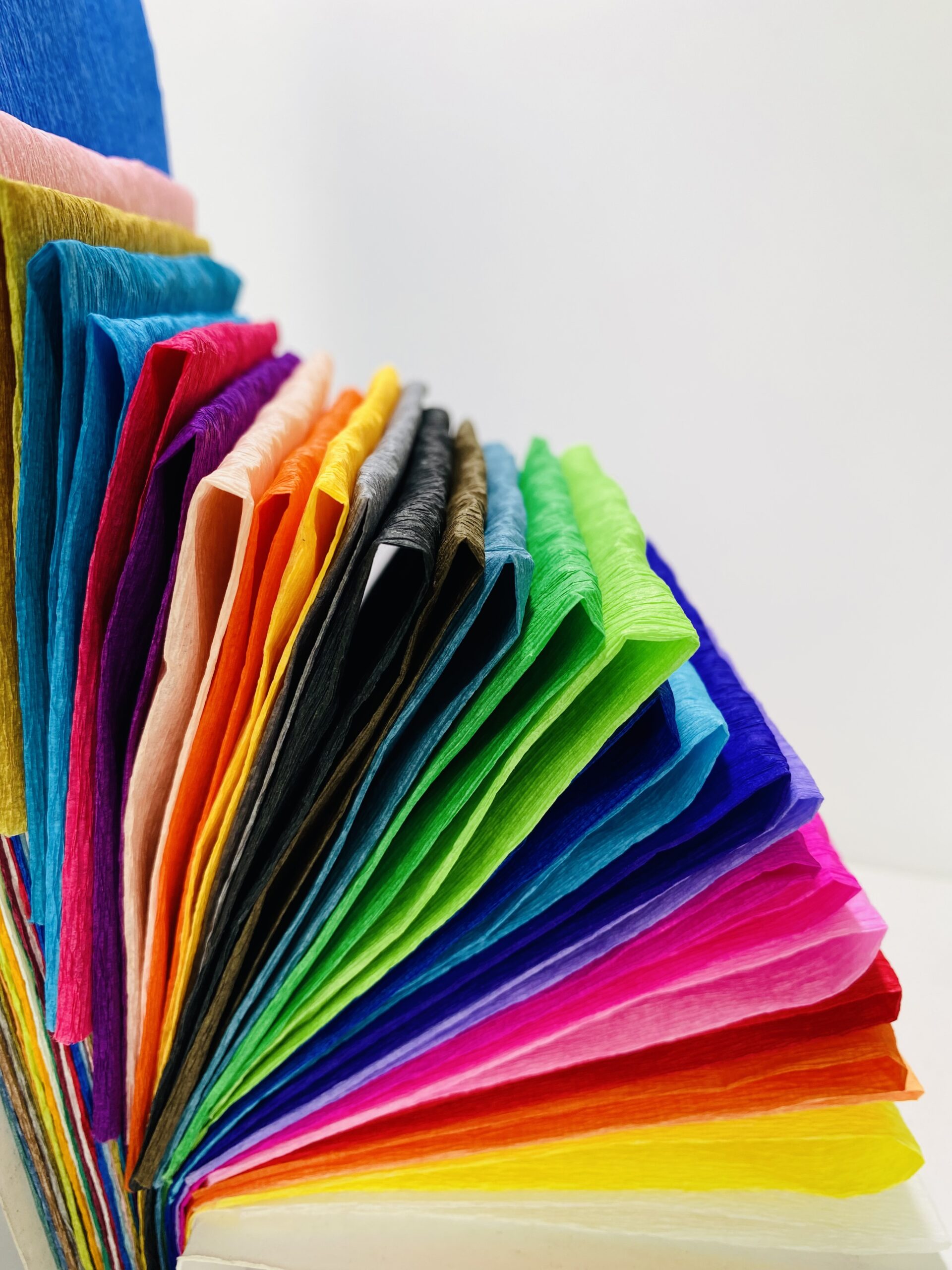 Gran variedad de colores de papel crepé marca Pingüino, los colores más sólidos, con tonos súper brillantes y el crepado más esponjoso que te permiten dar un acabado totalmente profesional a tus proyectos de papel.